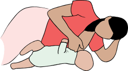 পাশ ফিরে শোয়া অবস্থান (Side-Lying Position): এই অবস্থানে মা খাওয়ানোর সময় বিশ্রাম নিতে পারেন এবং পেটের উপর চাপ কম পড়ে।[৭]