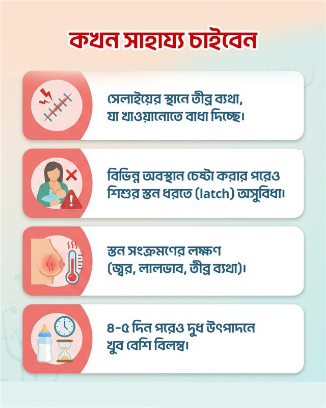 নিম্নলিখিত বিষয়গুলো লক্ষ্য করলে আপনার স্বাস্থ্যসেবা প্রদানকারী বা ল্যাক্টেশন কনসালটেন্টের সাথে পরামর্শ করুন: